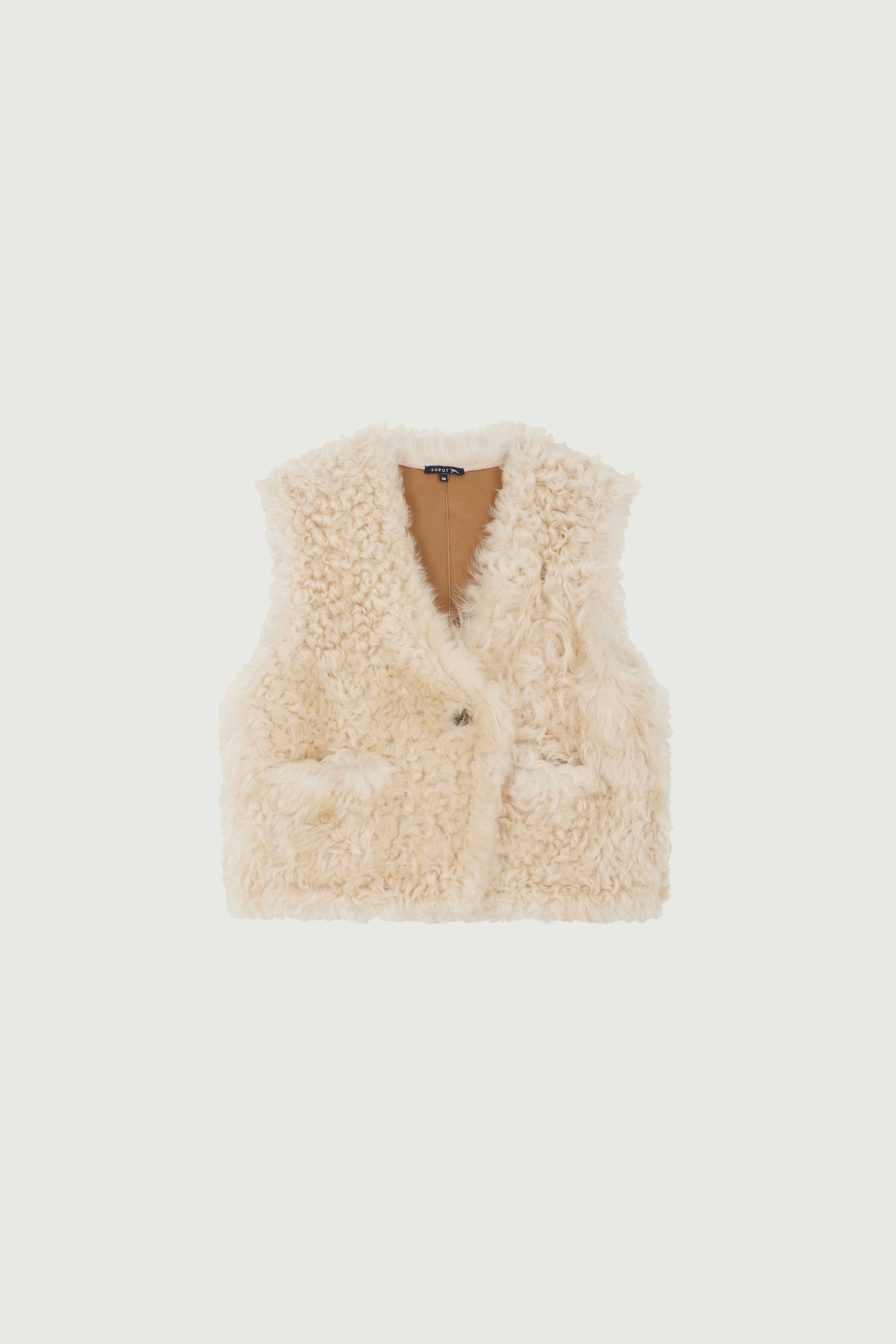 uden bodywarmer Natural bouclette sheepskin cardigan