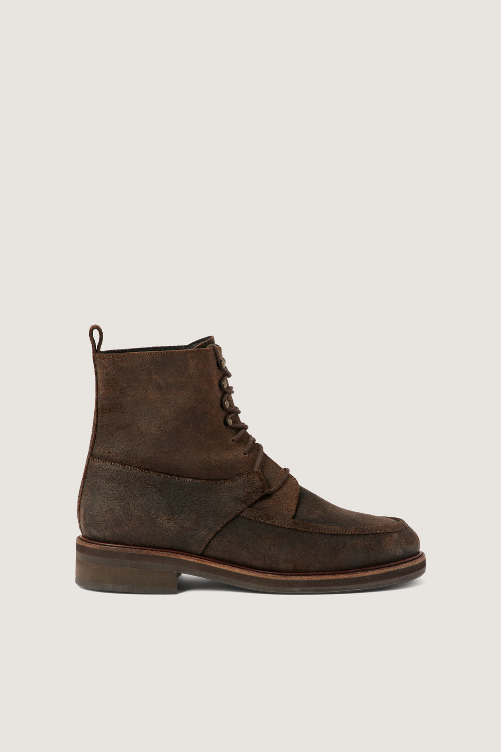 Charcoal oiled leather ankle boots - Lace-up high ankle boots- Natural oiled texture- Topstitch and cutout details- Metal hooks- Upper length: 14 cm- Heel height: 3 cm- LWG leather