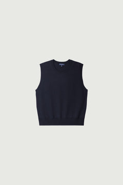 GUILHEM is a long coat in deep navy boiled wool. Its straight cut and shirt collar give a masculine feel. The semi-concealed button placket and welt pockets add refinement. The thick, fluffy wool ensures warmth and comfort for winter.