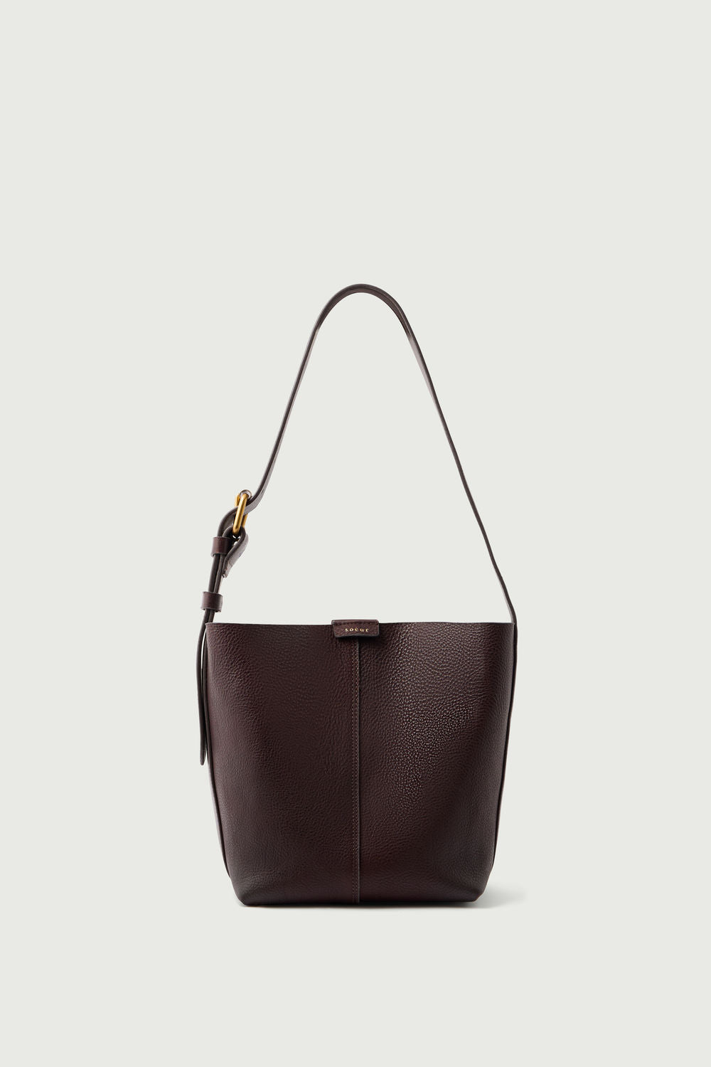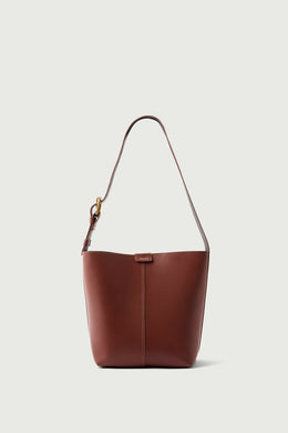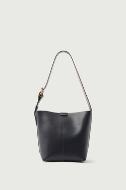 - Two-tone grained leather bucket bag with rectangular base